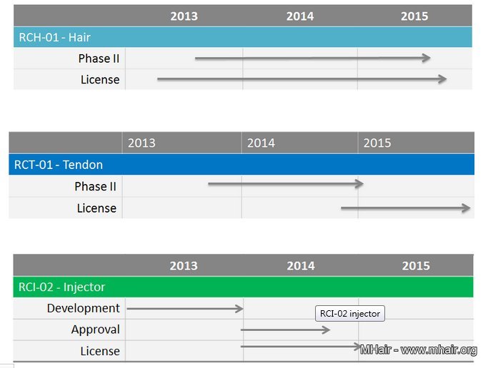 RepliCel首席醫療長Dr. Rolf Hoffmann表示:「這是一個非常重要的里程碑,意味著我們在美國所提出的專利申請核准與RepliCel命名為RCH-01的真皮鞘杯毛囊療法連結 起來。這是重要的,因為公司會在美國開始著手進行關鍵的臨床試驗,第二回合的試驗會在今年下半年,在德國展開」。真希望RepliCel的臨床實驗的時程 表能夠再快一點。